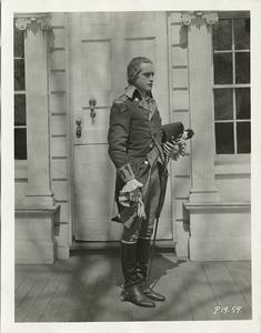 The man posing as Hamilton is not truly Alexander Hamilton... however, he does resemble him closely. It is uncanny how much this young man resembles Hamilton. I believe he is posing in front of The Grange, Hamilton's New York home in (now) Haarlem. Could be a relative, a grandson?